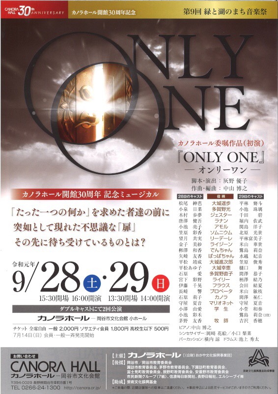 カノラホール開館30周年記念オリジナルミュージカル 『ONLY ONE 』-オンリーワン- 脚本・演出:灰野優子 作曲・編集:中山博之 【公演日時】 2019年 9月28日(土) 午後4時開演(午後3時3 […]
