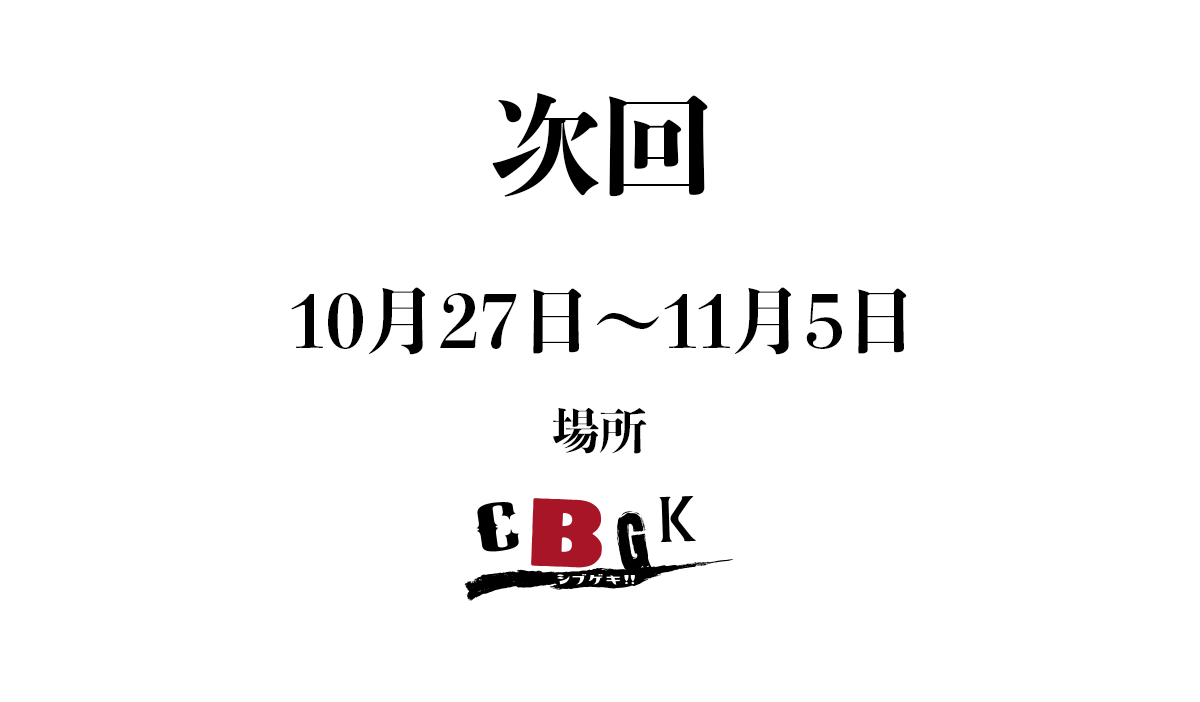 2017年10月27日(金)~11月5日(日)CBGKシブゲキ!!にて行われる山田ジャパン公演の出演者募集に伴い、オーディションを開催致します!! 応募方法 メールにて受付致します。件名に「山田ジャパン10月公演オー […]