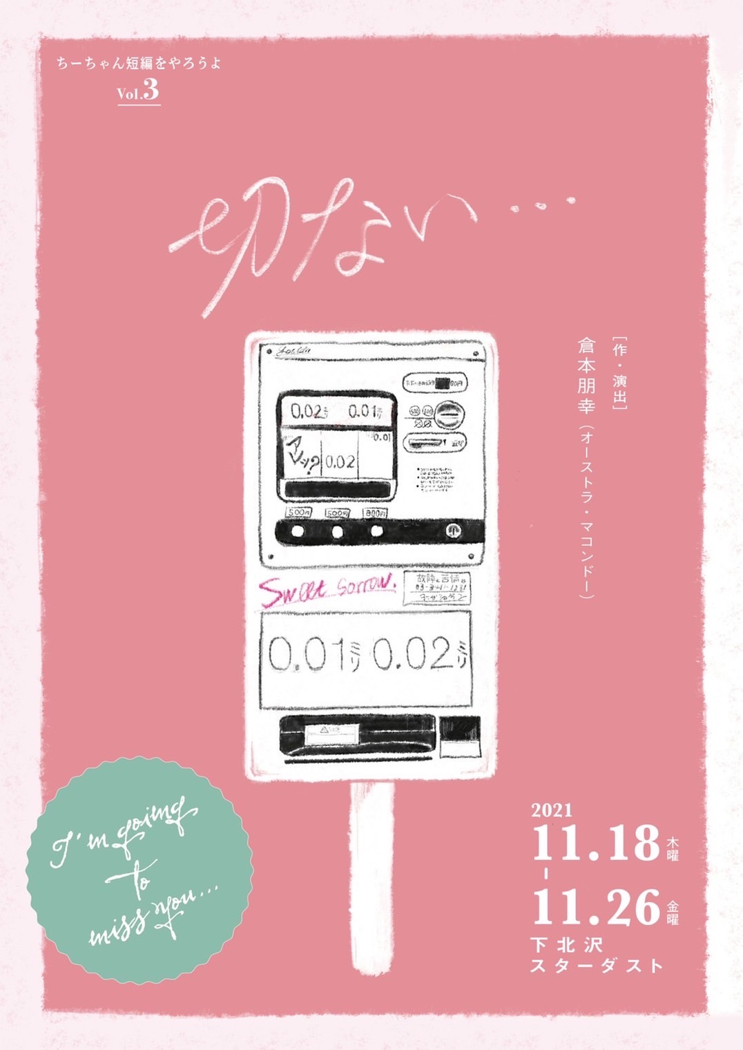 ちーちゃん短編をやろうよvol.3 『切ない』 【作・演出】 倉本朋幸(オーストラ・マコンドー) 【日程】 2021年11月18日(木)~11月26日(金) 【会場】 下北沢「スターダスト」 〒1550031 東京都世田 […]